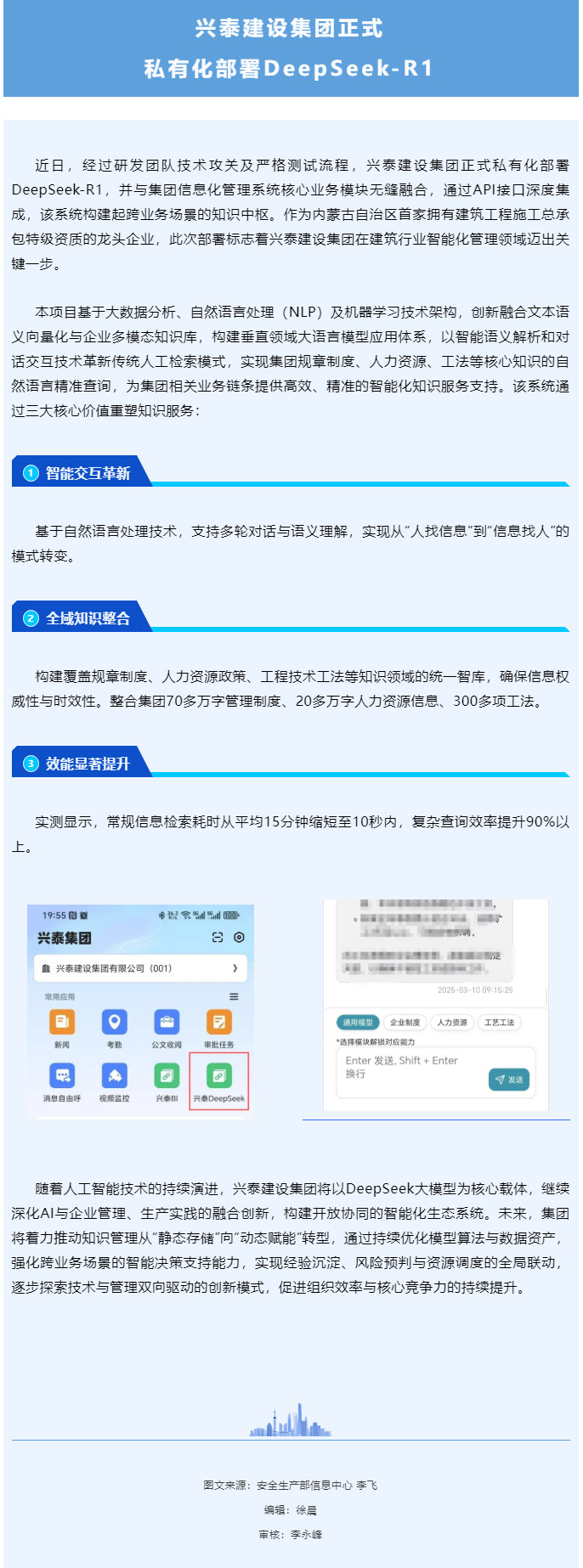 智啟新程|興泰建設集團DeepSeek與業(yè)務系統(tǒng)集成賦能企業(yè)培育新質(zhì)生產(chǎn)力